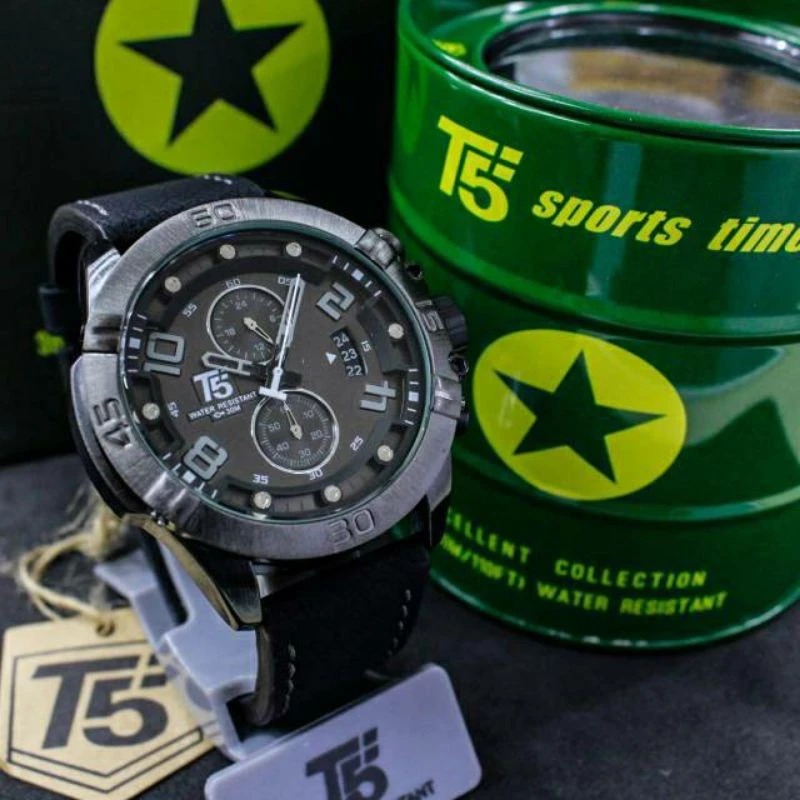 JAM TANGAN PRIA T5 H 3637 FULL BLACK LEATHER CHRONOGRAPH FREE ONGKIR - FREE BOX ORIGINAL
