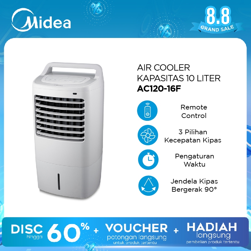 [HADIR KEMBALI] Midea Air Cooler 10L 3 Fan Mode with Remote & Angle 90 Derajat - Model AC120-16AR/AC120-16F | Humidifier