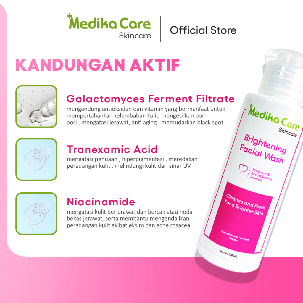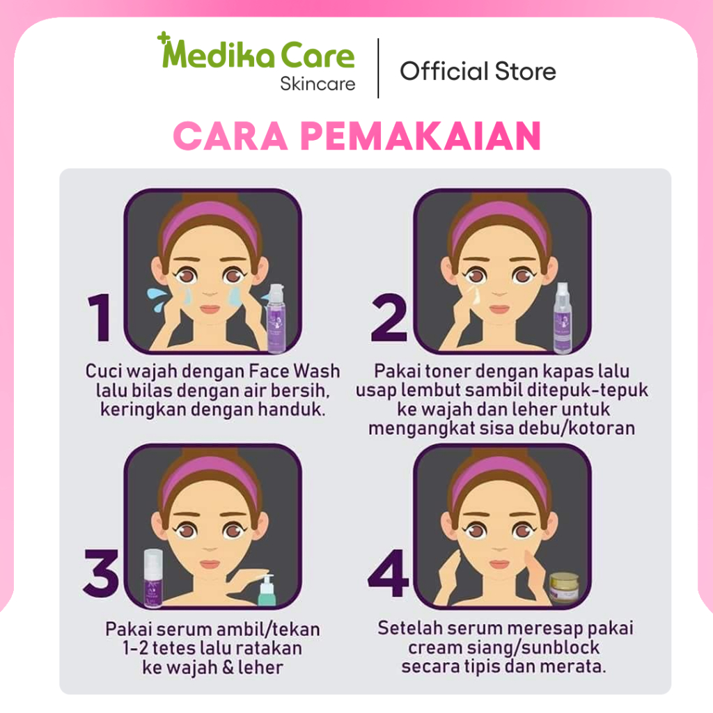 Medika Care Basic Skincare 3 IN 1, Mencerahkan kulit kusam (Facial wash + Moisturizer + Sunscreen)