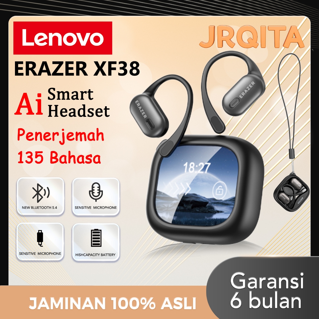 Lenovo XF38 eraphone Terjemahan AI -time Headset Terjemahan AI OWSHeadphone Nirkabel Bluetooth V5.4 Kontrol Layar Headse