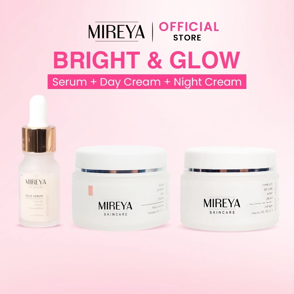 Mireya Mochi Bright & Glow 2 - SERUM + DAY CREAM + NIGHT CREAM - Paket Skincare Serum Cream Siang & Cream Malam untuk Merawat & Mencerahkan Wajah secara Maximal