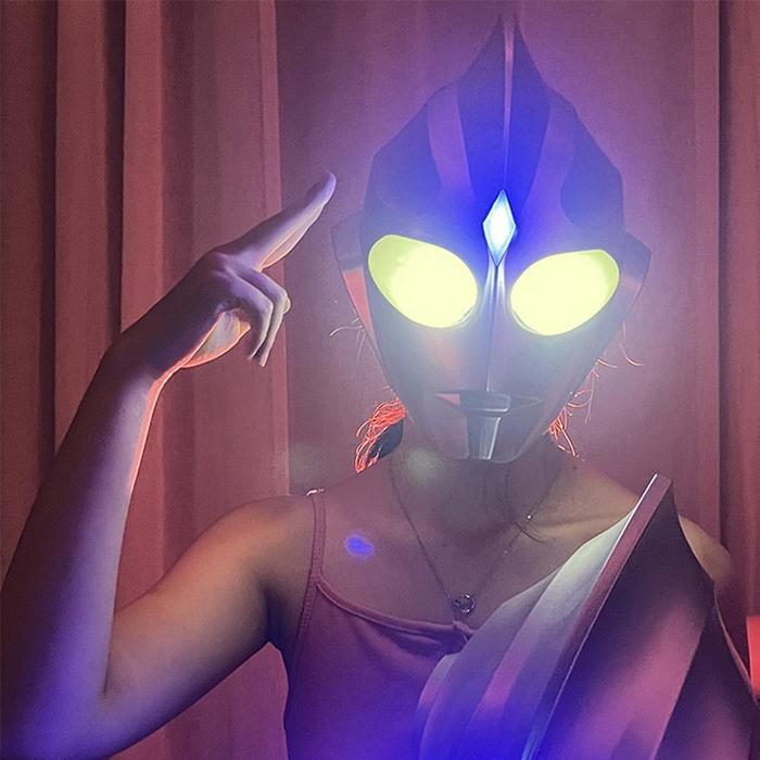 Tiga Ultraman Tutup Kepala Helm Masker Bercahaya COS Mainan Helm Topi Pesta dan Masker Topeng - Cahaya Putih