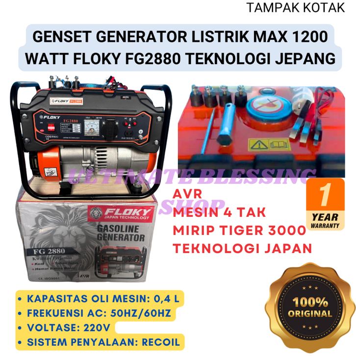 GENSET GENERATOR LISTRIK MAX 1200 WATT FLOKY FG2880 TEKNOLOGI JEPANG Original Berkualitas - ULTIMATE BLESSING SHOP