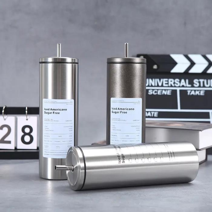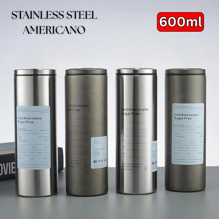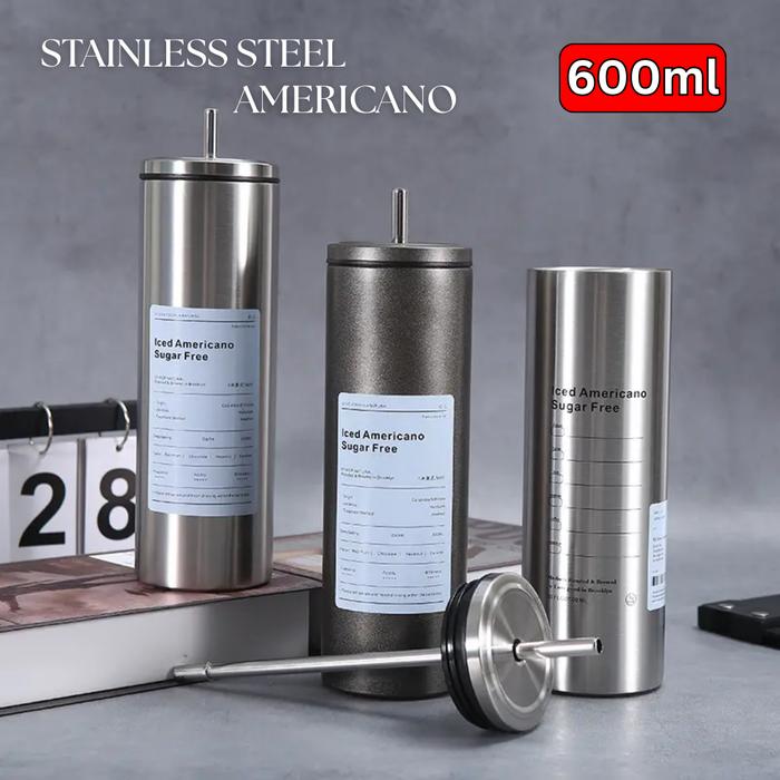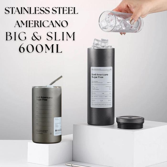 TUMBLER BIG & SLIM AMERICANO STAINLESS STEEL 600ML / TUMBLER MUG / GELAS KOPI FREE SEDOTAN - SS RANDOM