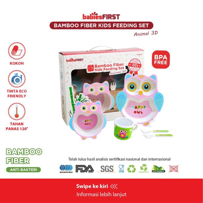 BABIESFIRST Bamboo Kids Feeding Set 3D Alat Makan Anak Karakter Animal - Owl