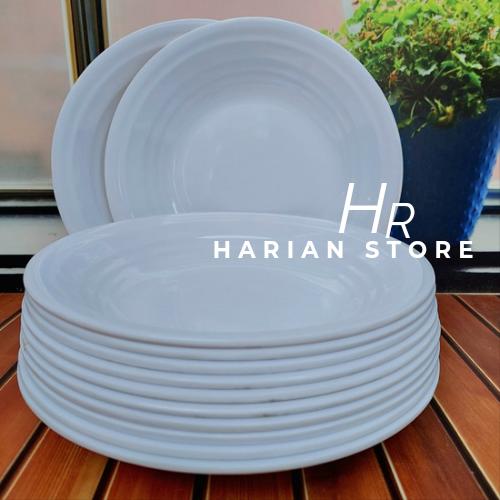12 PCS PIRING MAKAN MELAMIN SUPER TEBAL MODEL ULIR TAHAN BANTING - 12 PCS PIRING PUTIH