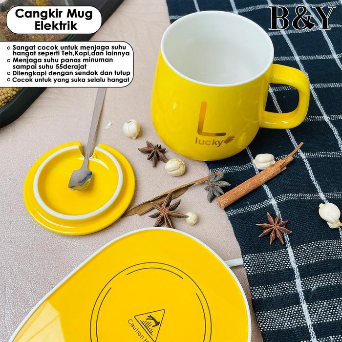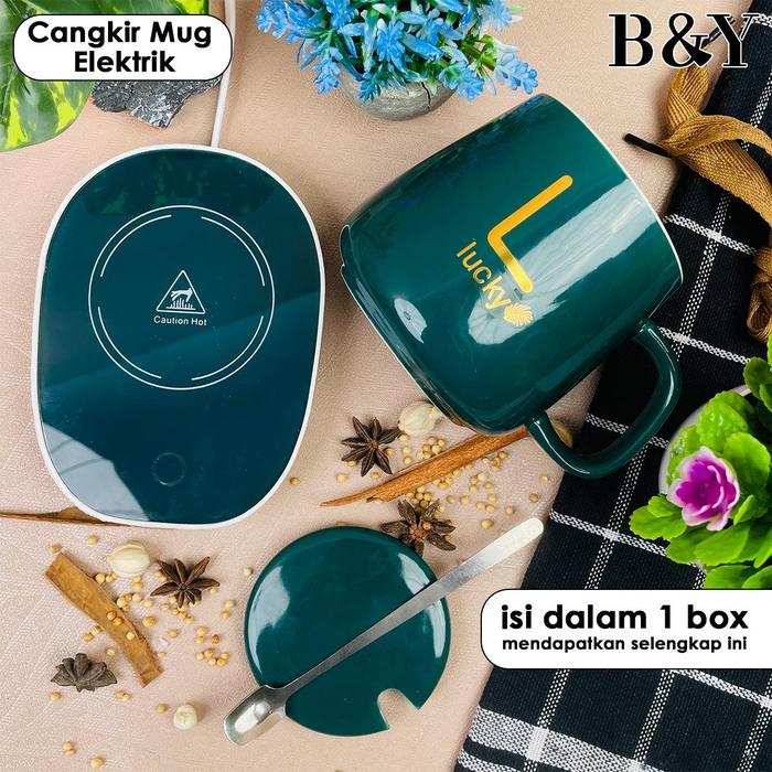 Gelas Keramik Elektrik / Mug Dengan Tatakan Penghangat Elektrik / Set Gelas Keramik / Mug Cangkir Elektrik - HIJAU GELAP