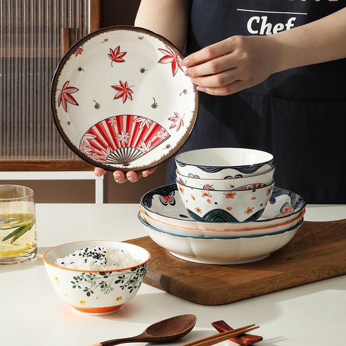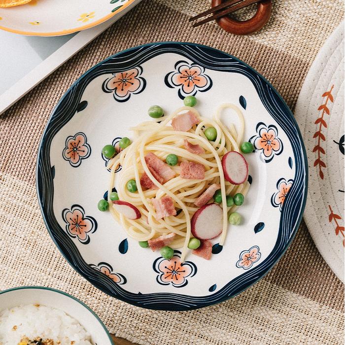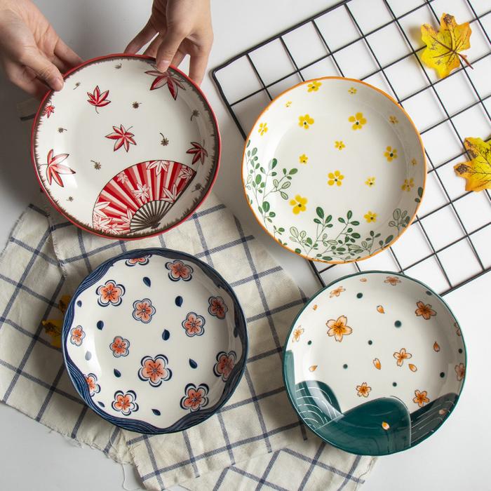 Piring Keramik Jepang Flowers Series / Piring Keramik / Piring Makan Keramik 20cm - BungaLisHijau Piring