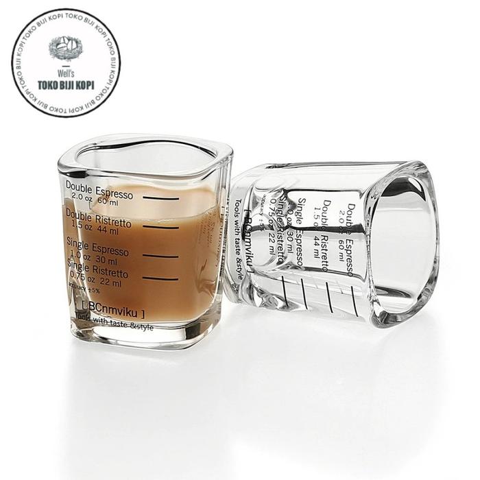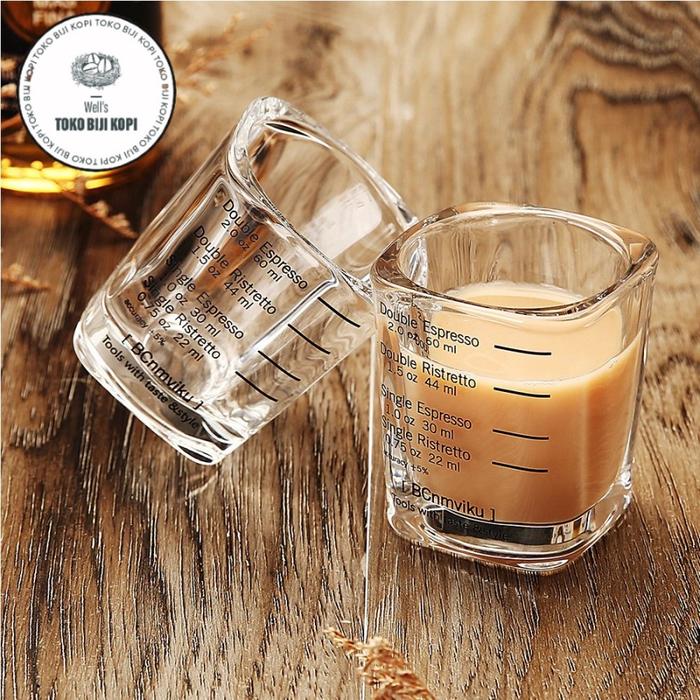 GELAS SLOKI ESPRESSO SHOT GELAS TAKAR KACA 60 ML BENTUK KOTAK BARISTA - HITAM
