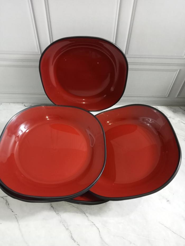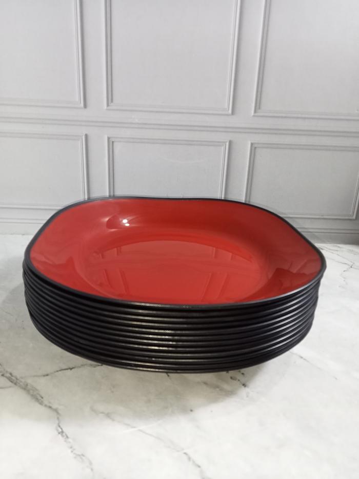 (12 PCS) Piring Ramen Segi Serbaguna Piring Plastik Ramen Merah Viral Kitchenware - PIRING RAMEN 6PCS