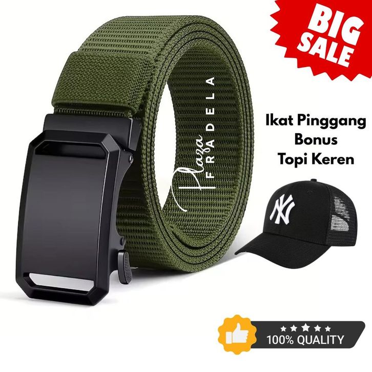 MURAH Sabuk Pria - Ikat Pinggang Nylon Kanvas Kepala Besi Gratis Topi (PF001) ehebd
