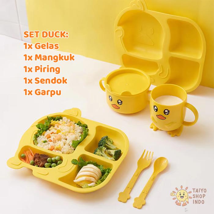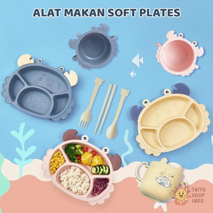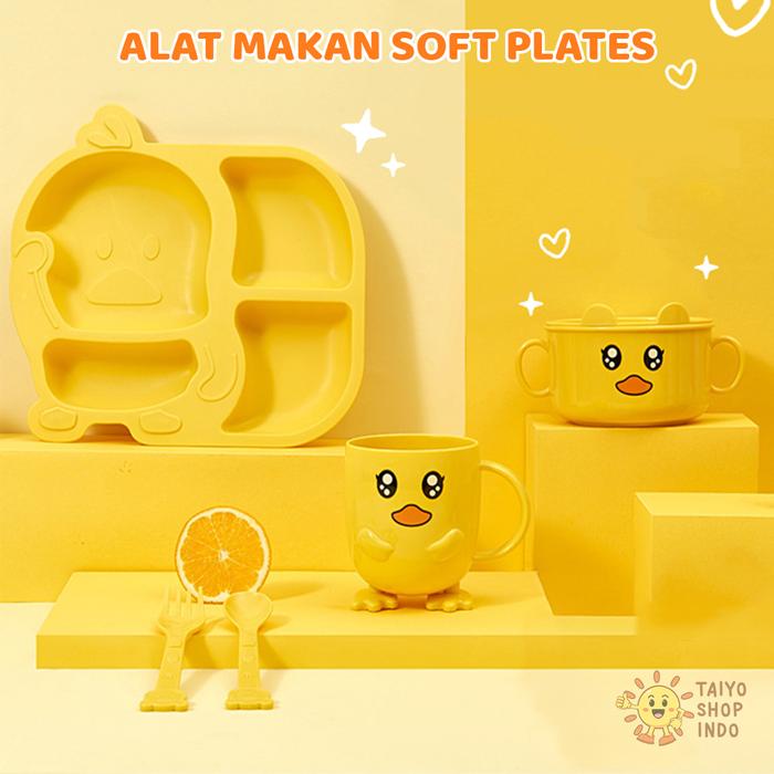 TAIYO Perlengkapan Alat Makan Soft Plates Set Bayi Anak Duck Bebek Crab Kepiting Gelas Mangkuk Piring - Piring Duck
