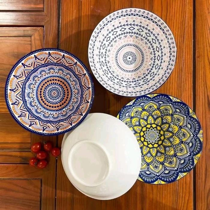 Mangkok 7 Inch Samurai Bohemian Aesthetic Mangkok Makanan Sup 18 Cm Berkualitas - Blue Bohemian