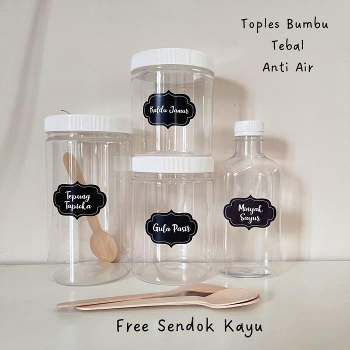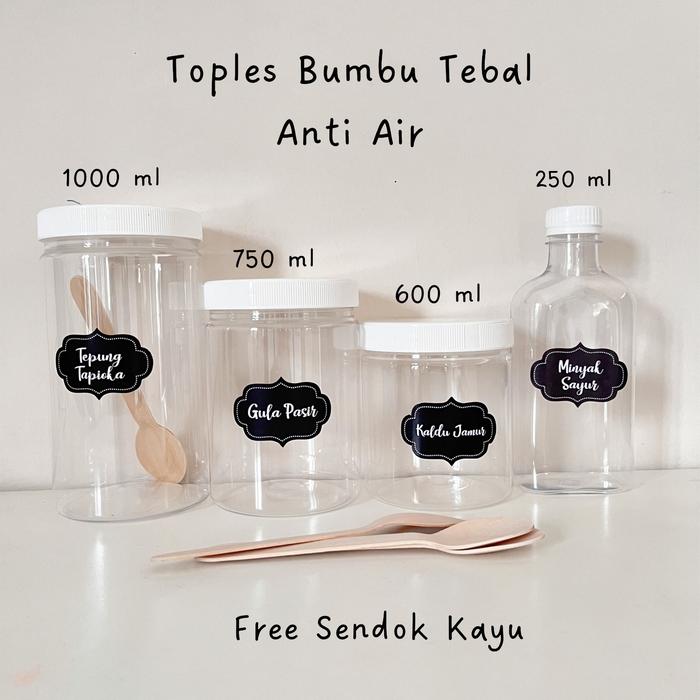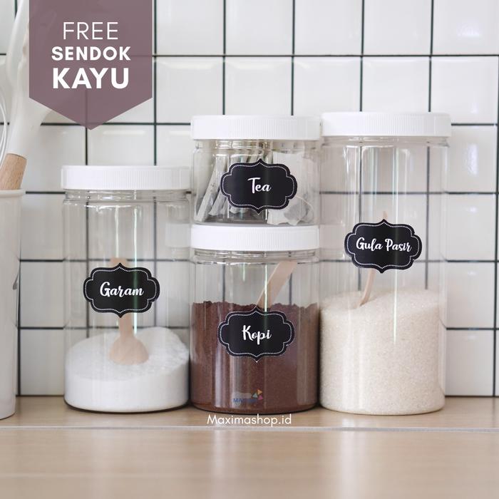 Tempat Bumbu Dapur dengan Stiker Anti Air Aesthetic Gratis Sendok Kayu - GARAM 600ML