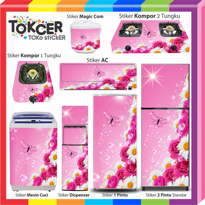 STIKER Kulkas/Stiker Kompor/Stiker Magicom/Stiker MesinCuci motif Kupu-Kupu PINK Bintang Sticker - 1 Pintu 60x120cm