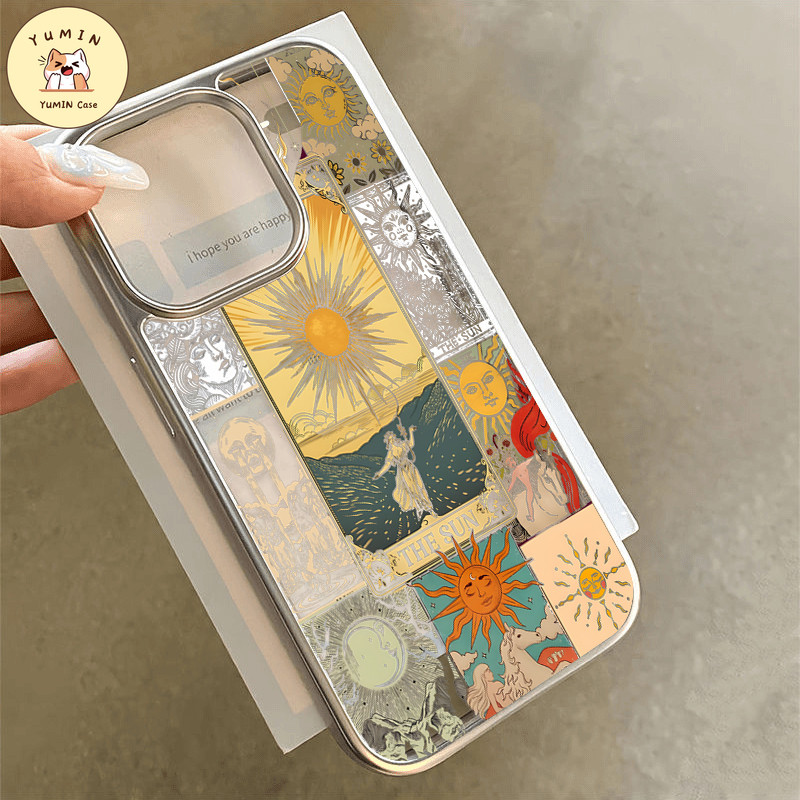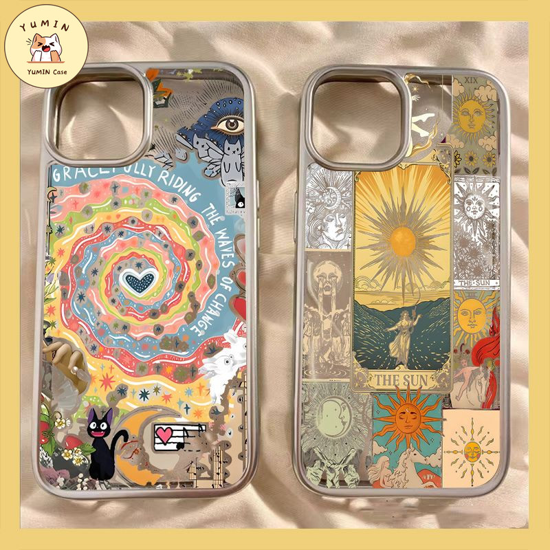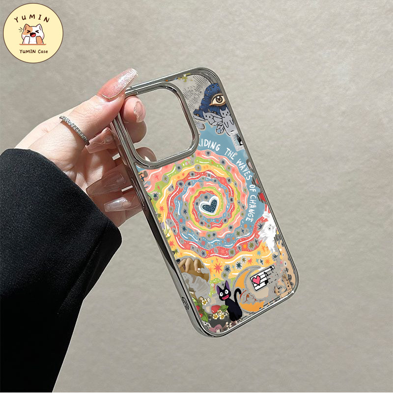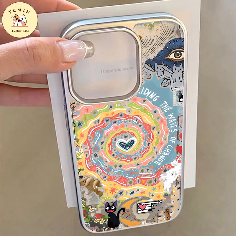 Fashion Seni Retro Dewi Matahari Grafiti Warna-warni Vortex Cat Case Kompatibel Untuk IPhone 7Plus XR 15 13 11 14 12 Pro