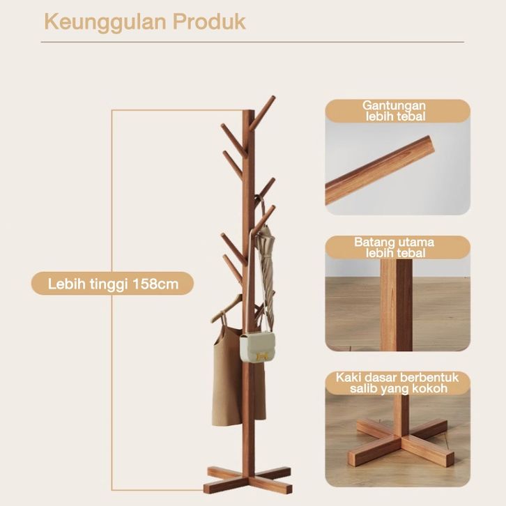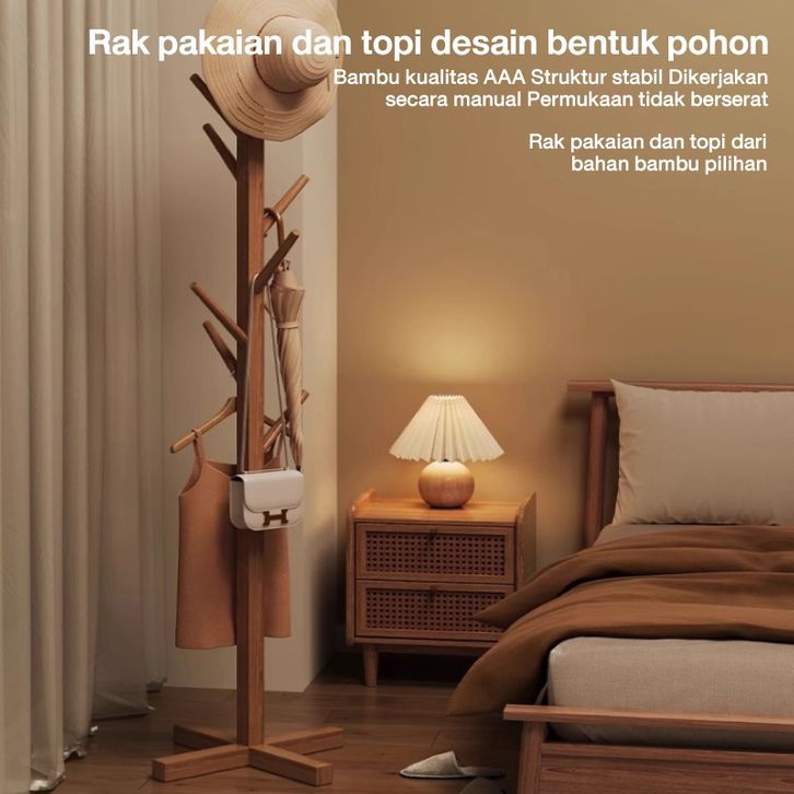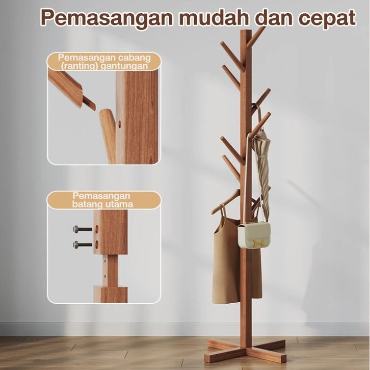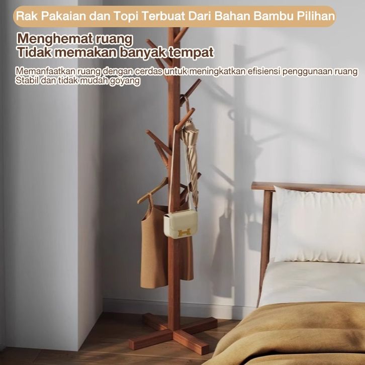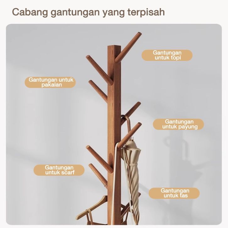 Stand Hanger Rak Gantungan Baju Kayu Multifungsi Hanger Tunggal untuk Gantungan Topi RAK BAJU GANTUNG-RAK BAJU ESTETIK