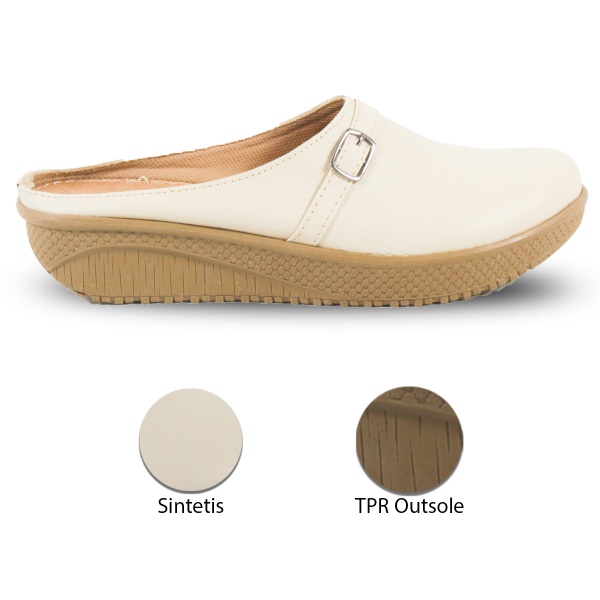 Hertz V 9993 Sepatu Sandal Bustong Wanita Terbaru Sandal Slop Wedges Mules Murah Berkualitas Krem