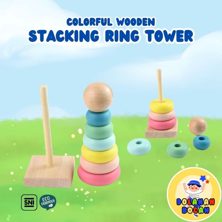NEW Arrival Mainan Anak Ring Donat Kayu Susun Colorful Wooden Stacking Ring Tower Rainbow Pastel Macaroon SL 07