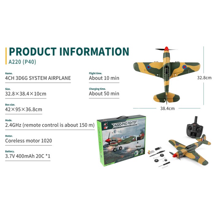 [Star] WLToys A220 P40 Pesawat RTF 4ch 2.4Ghz Remote Control