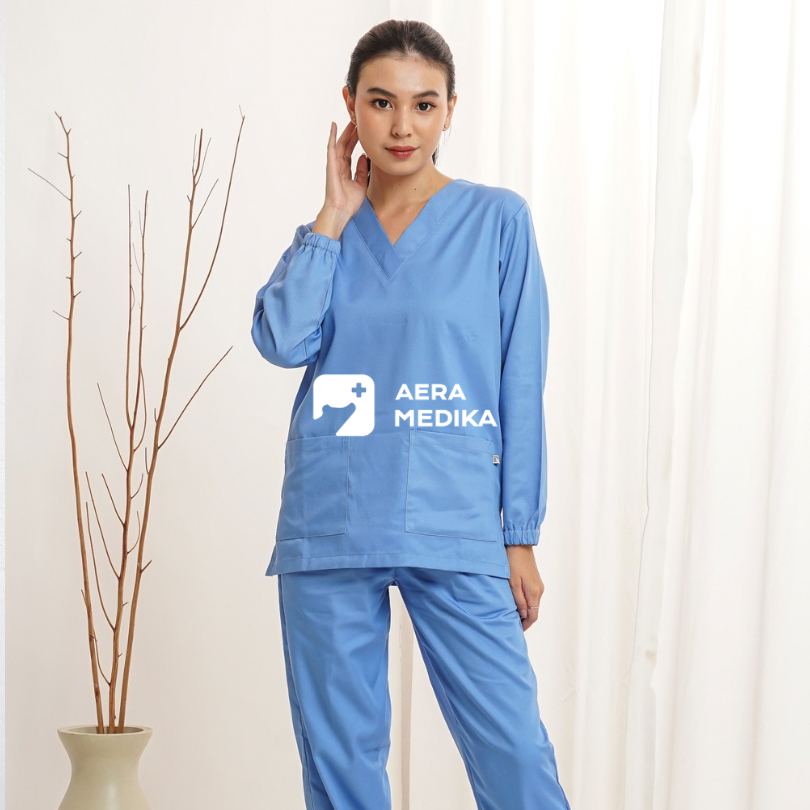 AERA MEDIKA - (SRT) - SET Baju Jaga Perawat / Dokter / Baju Jaga / Seragam Medis / Scrub Medis / Oka Lengan Panjang