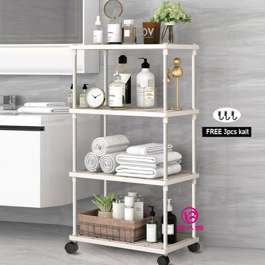 BAS rak susun serbaguna rak dapur plastik rak kamar mandi 4 tingkat free 3 cantolan dengan roda