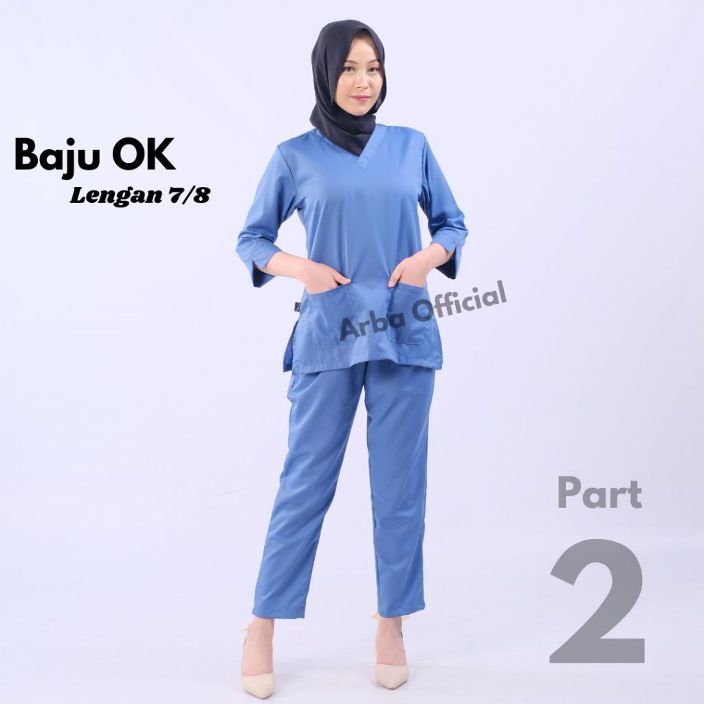 Baju OK Lengan 7/8 One set Jaga Perawat Nakes Pakaian Kerja Bidan Dokter BahanToyobo
