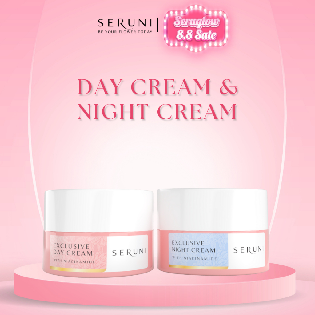 Paket Bundling Seruni Exclusive Day Cream & Exclusive Night Cream - Membantu Mencerahkan Wajah & Membantu Melindungi Kulit Niacinamide Acid