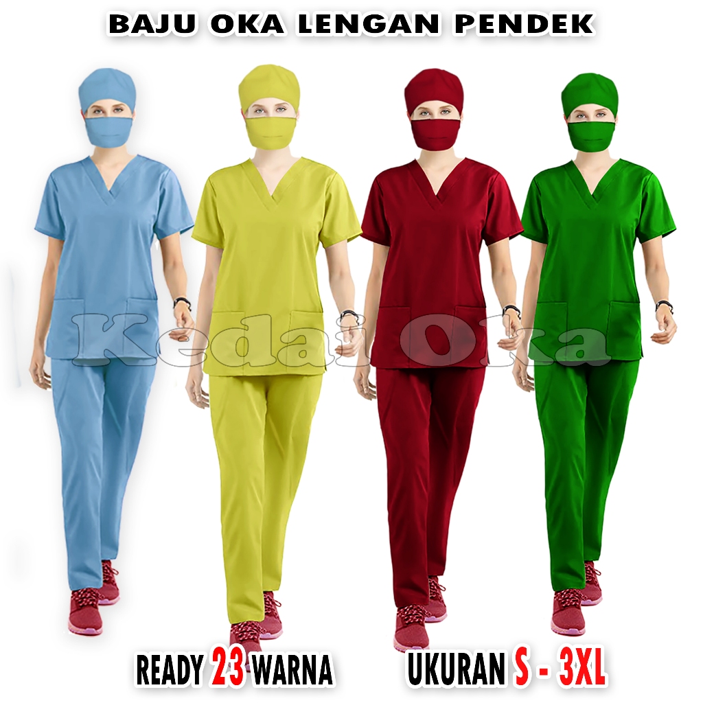 Baju Oka Perawat - Seragam Kerja Medis - Baju OK Lengan Pendek - Scrub Oka - Baju Jaga Dokter Bidan - Bahan American Drill - Promo