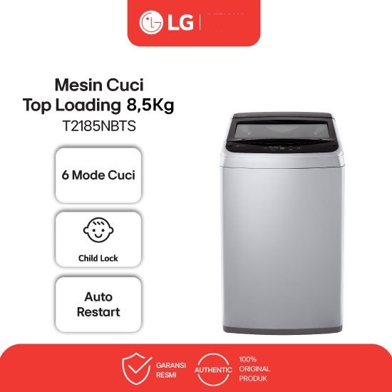 Mesin Cuci Lg Top Loading 8.5kg - 6 Mode Cuci - Child Lock - Auto Restart - White - Model T2185NBTS