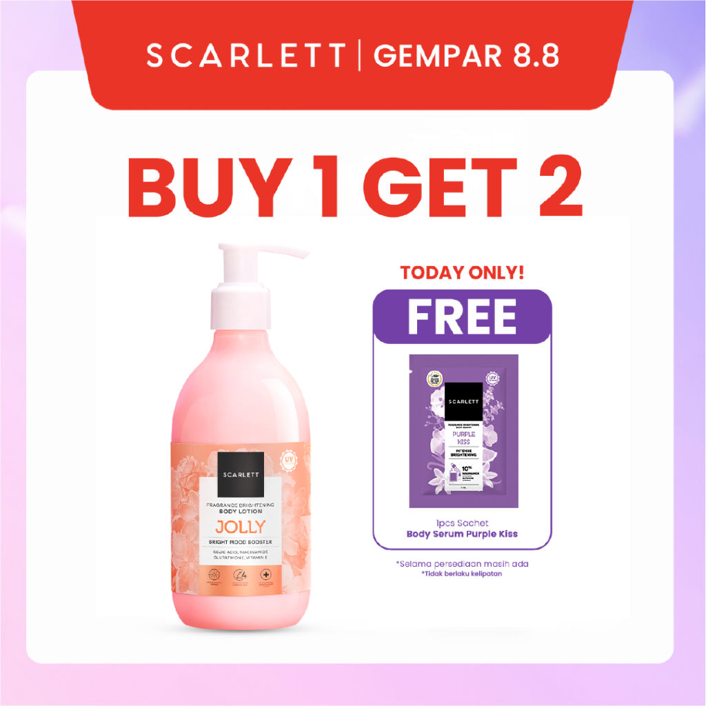 SCARLETT Fragrance Brightening Body Lotion Bright Mood Booster 300ml +4 Essential Oils 3X Brightening Power | Solusi Untuk Kulit Kering | Menenangkan, Mencerahkan Kulit, Wangi Tahan Seharian
