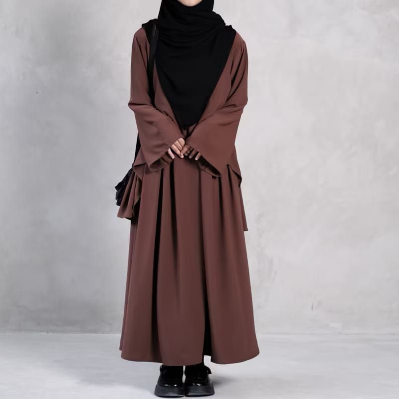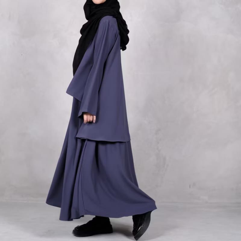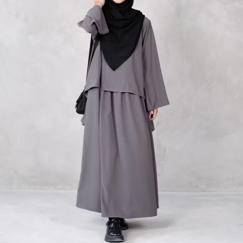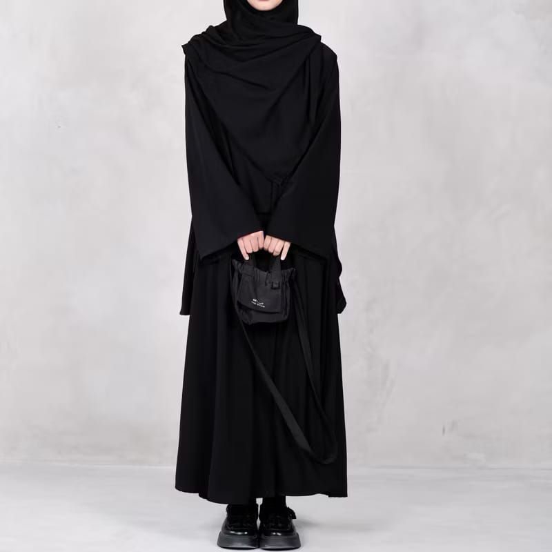 Hanna Abaya One Set Rok+Tunik Gamis Remaja Terbaru Bahan crincle airflow