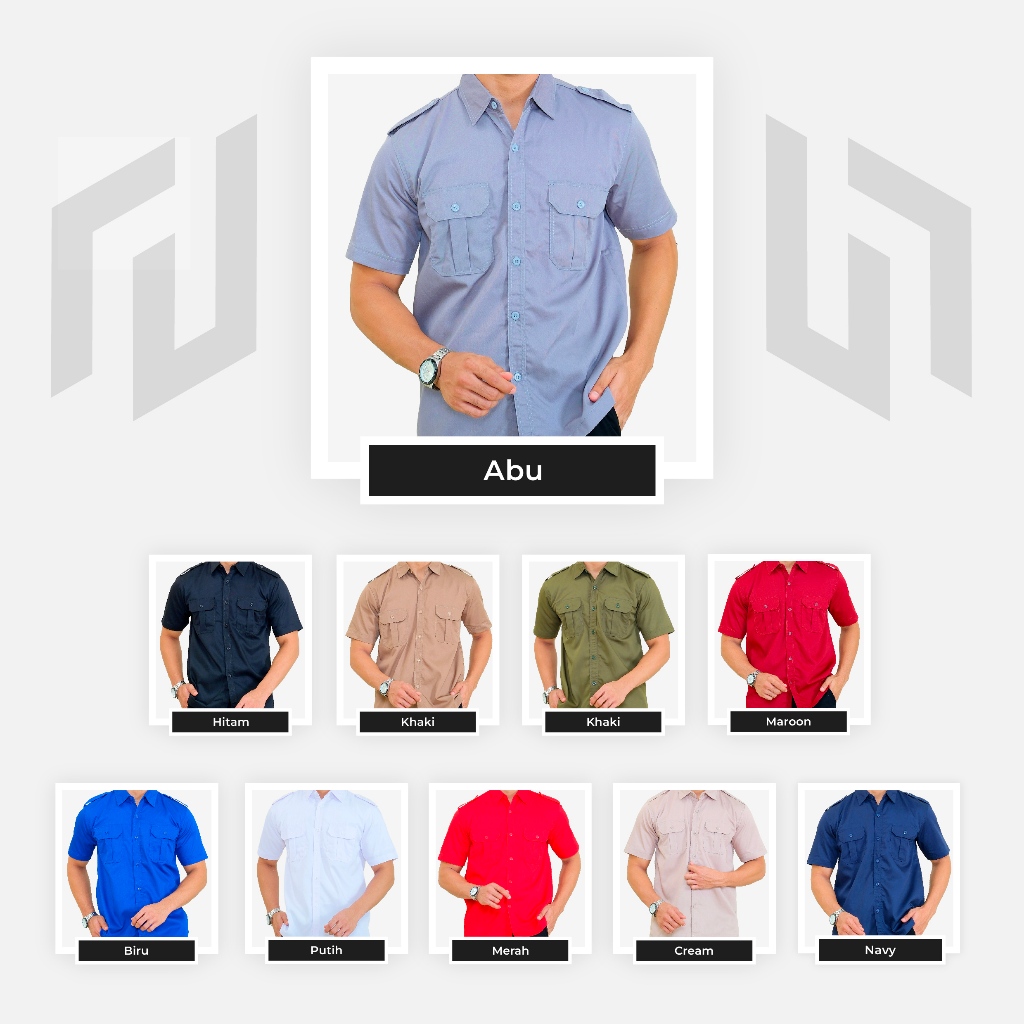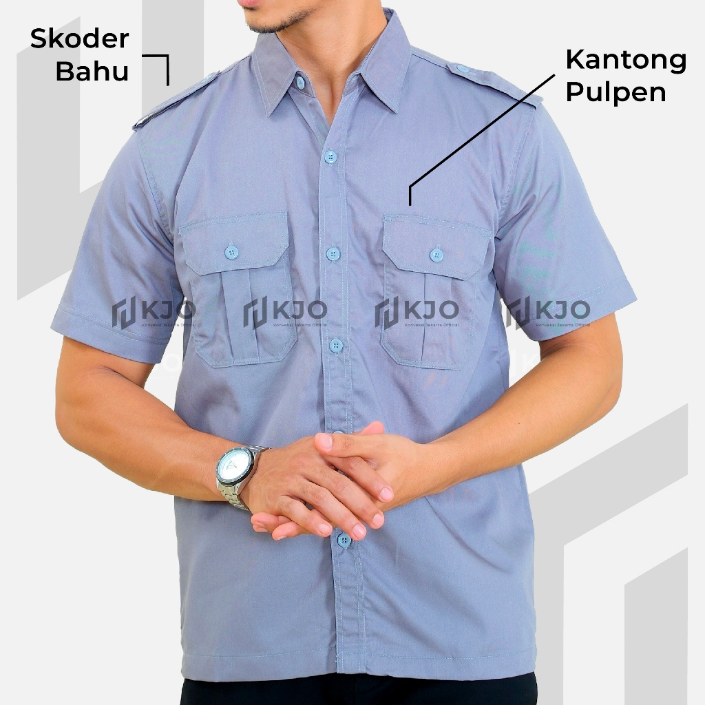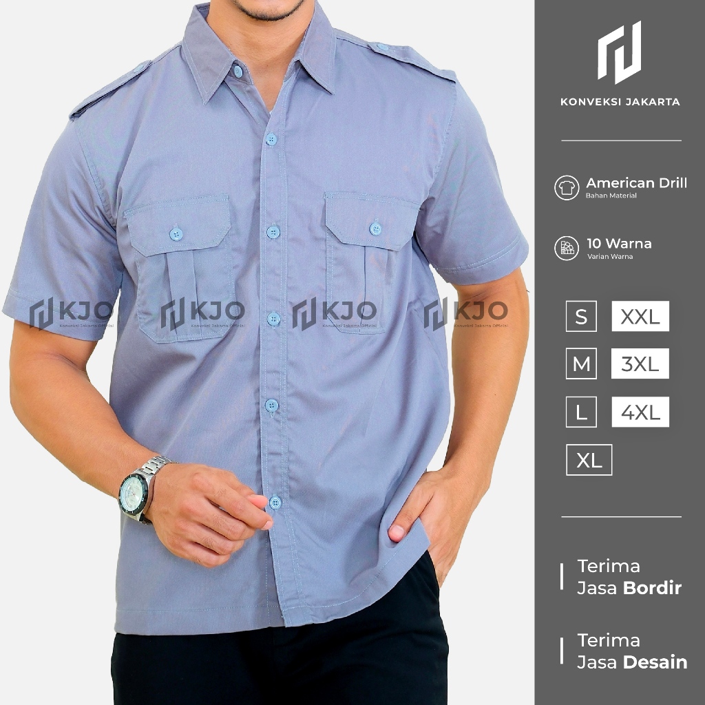 Baju Kemeja PDL Lengan Pendek Pria - Seragam Pakaian Kerja Taktikal Tactical Dinas Lapangan Outdoor Gunung Material American Drill Warna Abu Abu - Konveksi Jakarta Official