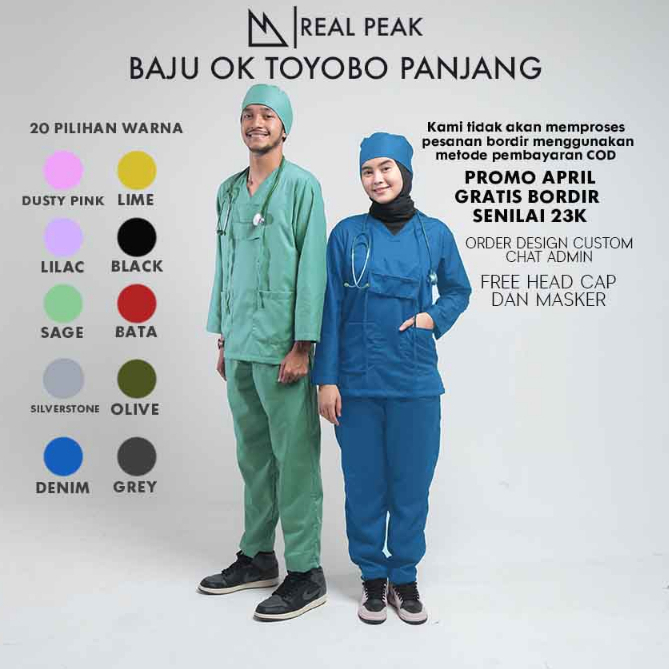 [FREE BORDIR NAMA] REAL PEAK DOCTOR SCRUB BAJU PERAWAT BAJU OK BAJU MEDIS Toyobo Scrub Lengan Panjang Baju Medis Lengan Panjang Bahan Toyobo