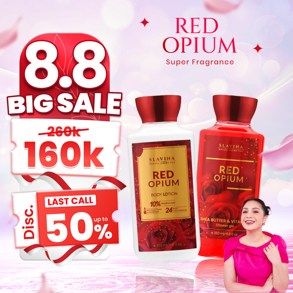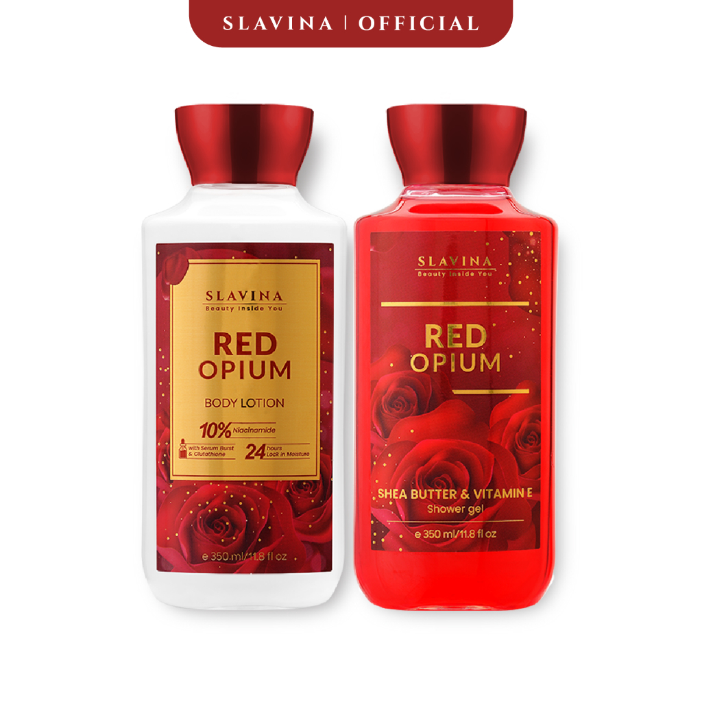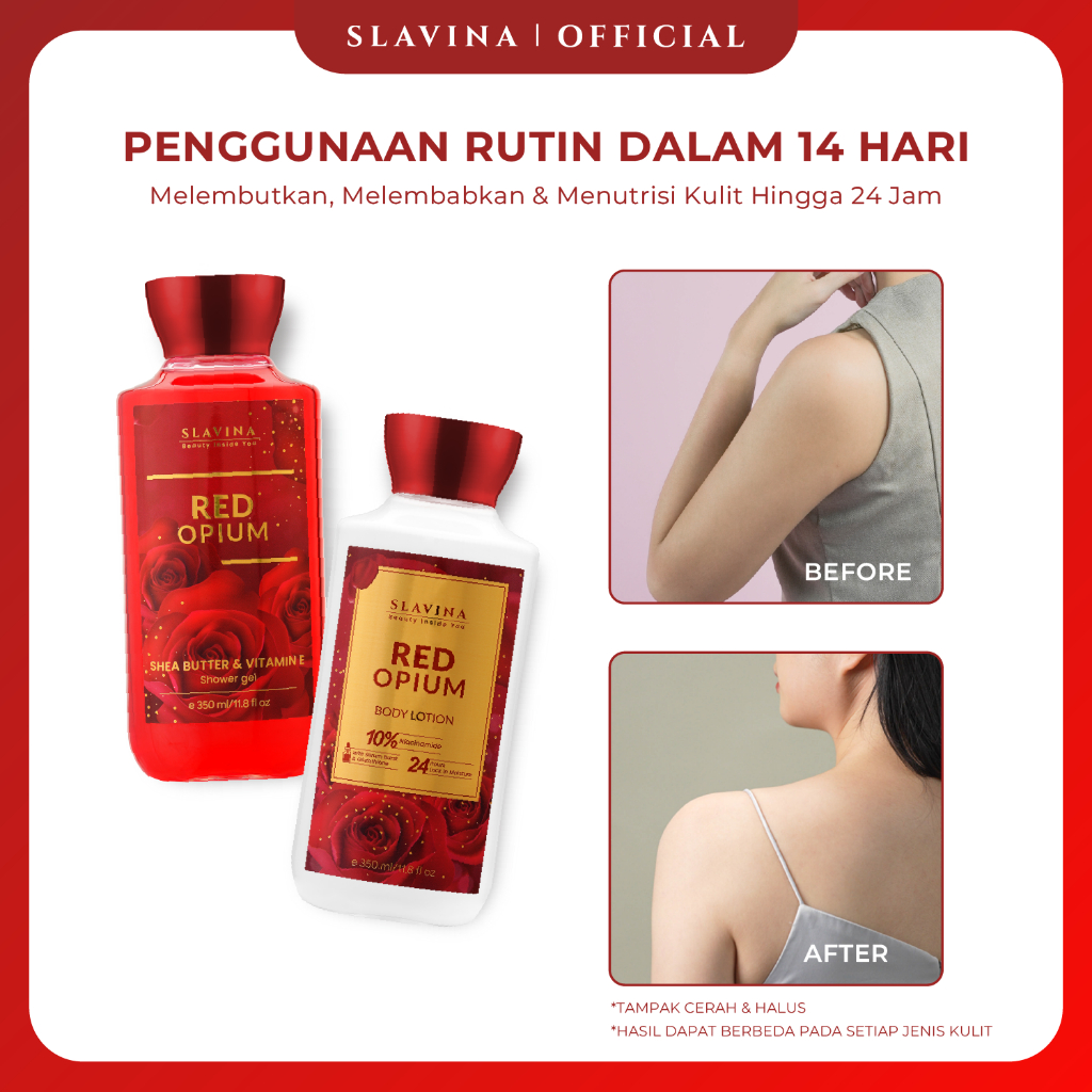 SLAVINA Red Opium Paket Body Lotion & Shower Gel - Wangi Tahan Lama Sabun Cair Mencerahkan Kulit
