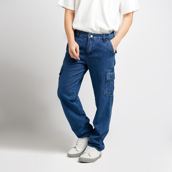 TERLARIS PLUVIOPHILE - LONG CARGO PANTS JEANS CELANA CARGO JEANS LOOSE FIT REGULER STANDARD BIOWASH DENIM STRAIGHT
