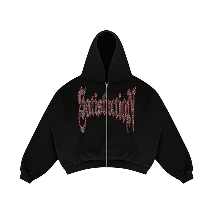TERLARIS SATISFACTION HOODIE ZIPPER BOXY 375GSM RHINESTONE BLEACH BLACK