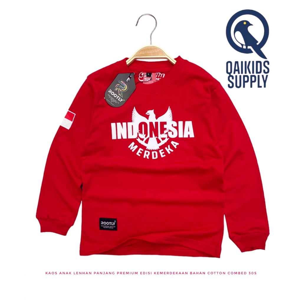 BAJU KAOS ANAK LENGAN PANJANG PREMIUM MERAH PUTIH EDISI KEMERDEKAAN USIA 1-12 TAHUN /baju kemerdekaan/baju/baju anak/baj