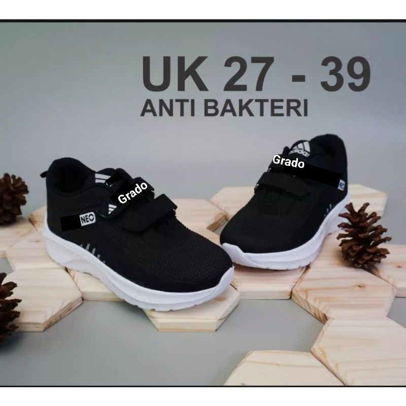 Sepatu Anak Sekolah PAUD , TK , SD , SMP Laki-laki Perempuan hitam putih terlaris neo Grado ready size 27- 40