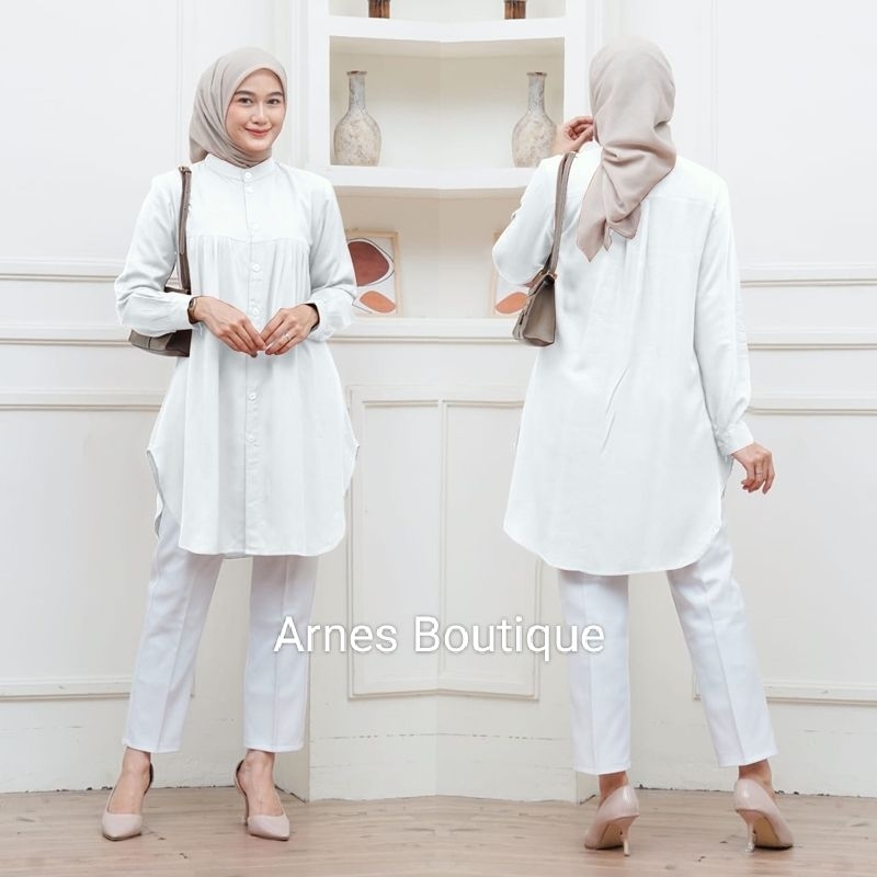 Baju Putih Atasan Wanita Tunic Rayon Twill Polos Busui Friendly Tunik Kerja Kuliah Basic