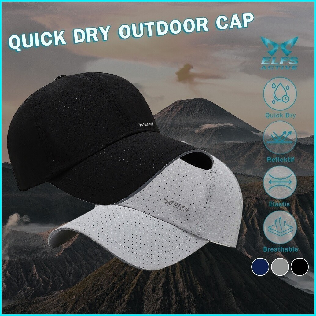 Elfs Active Quick Dry Baseball Cap Topi Olahraga Breathable Reflective