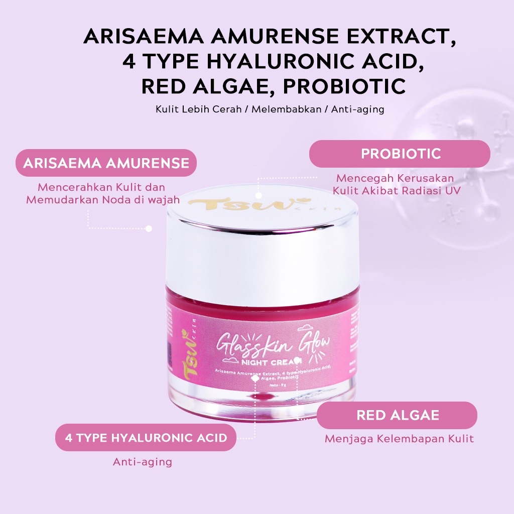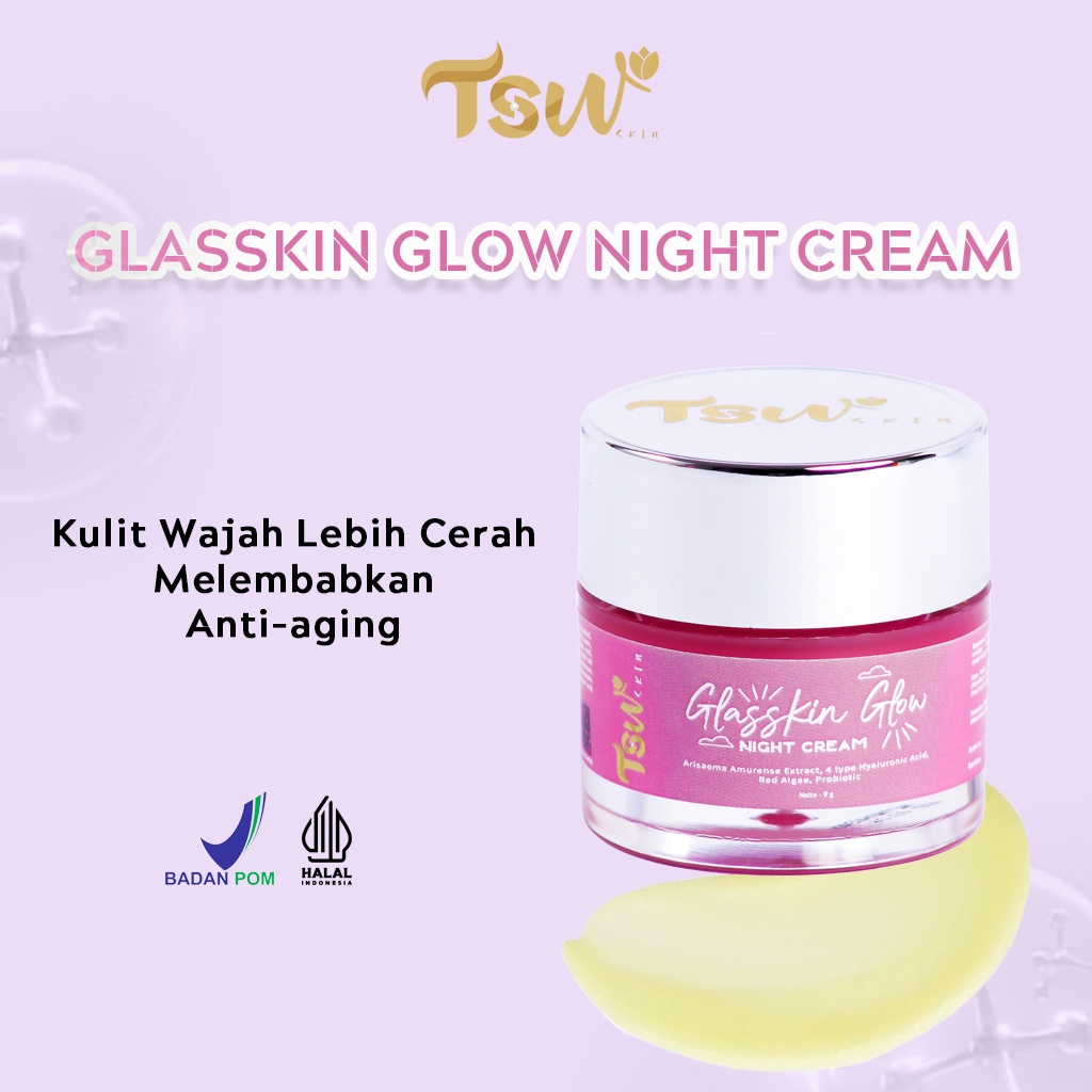 TSW SKIN - Glasskin Glow Night Cream Moisturizer Cream Mencerahkan Wajah & Mencegah Penuaan Dini serta Menghilangkan Jerawat