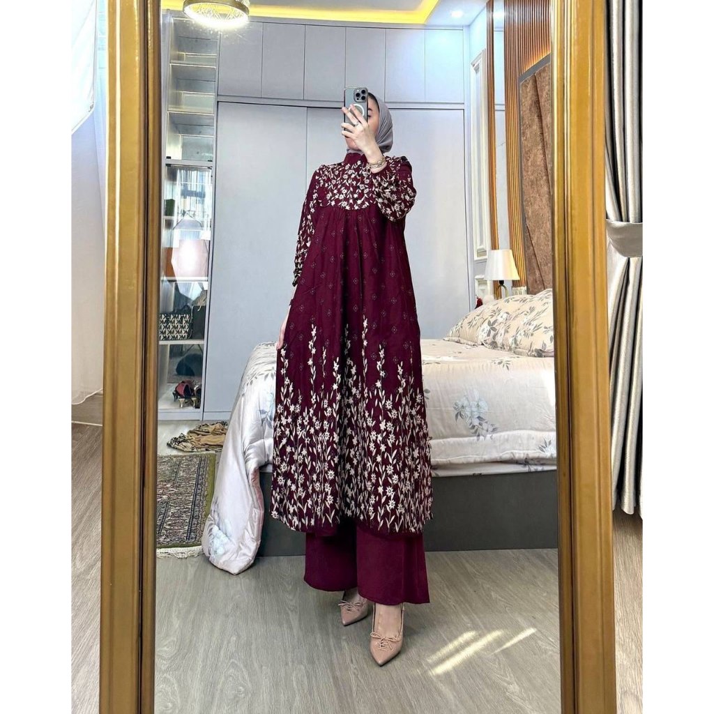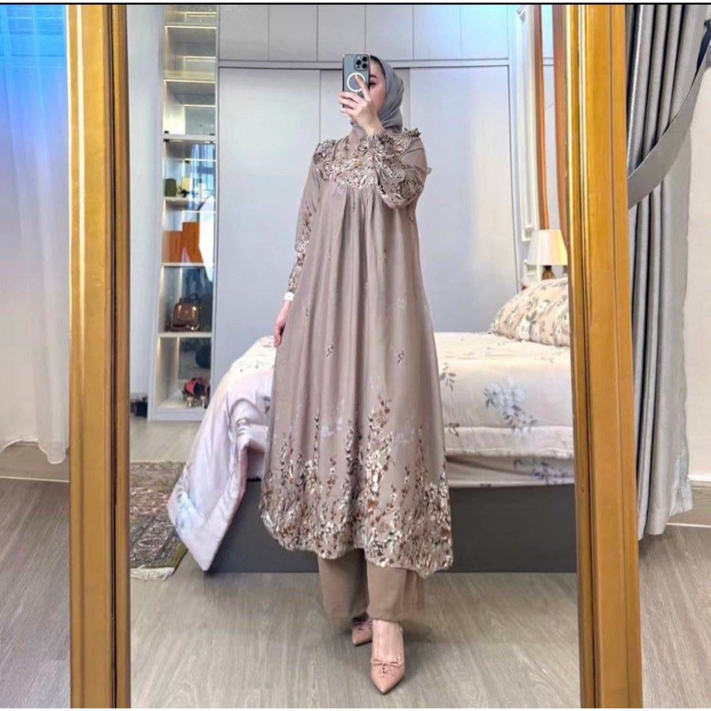 One SET Setelan Allisa Setelan Jumbo LD110 LD120 Setelan Wanita Baju Muslim Setelan Tunik Celana