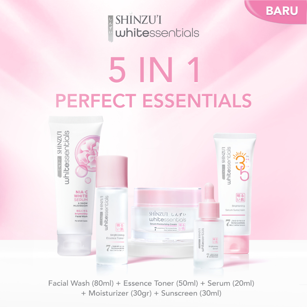 Shinzui Whitessentials Perfect Essential SkinCare Package (Facial Wash, Moisturizer, Sunscreen, Toner, & Serum)