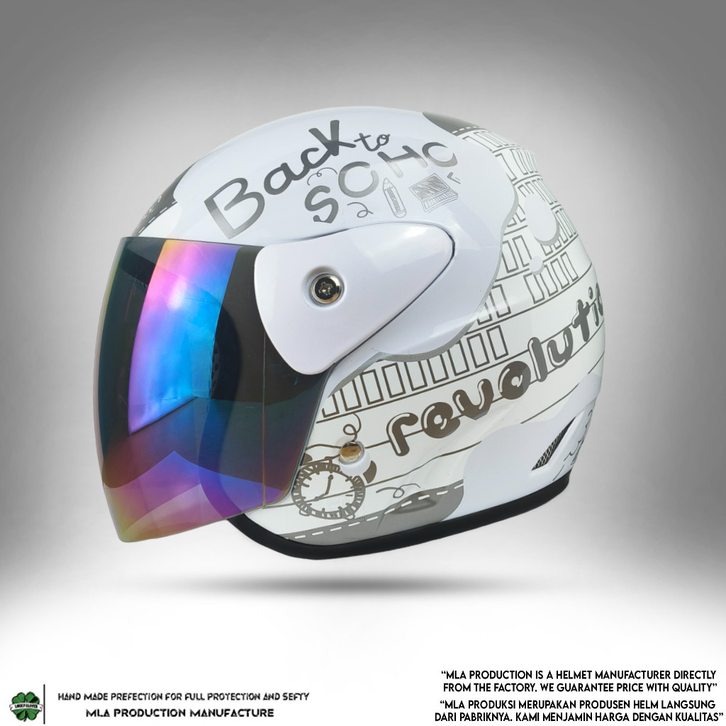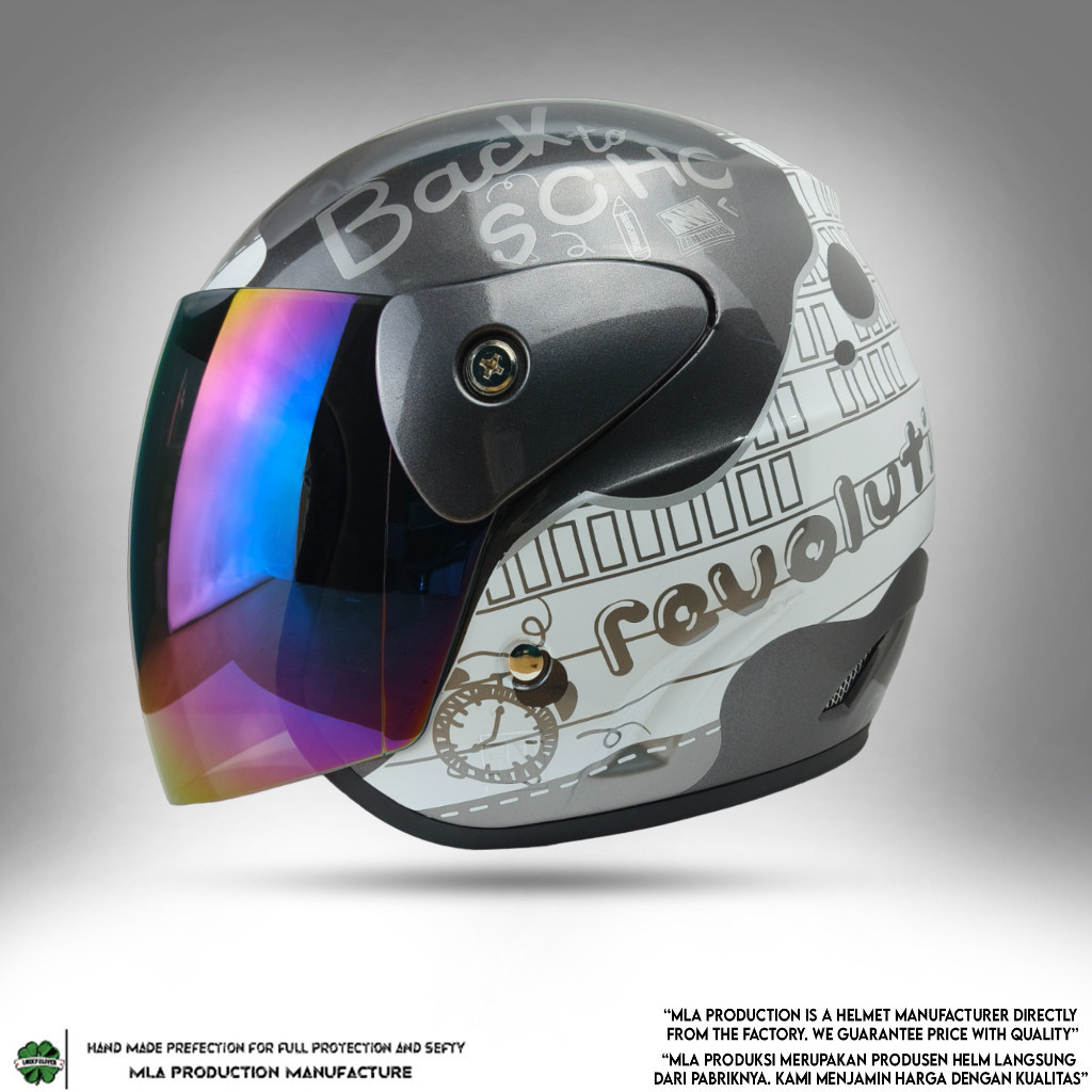 Helm Half Fe Dewasa Evo Motif Note Revolution Mirip Seperti Helm GM Original Motif NOTE Beck To School - SNI