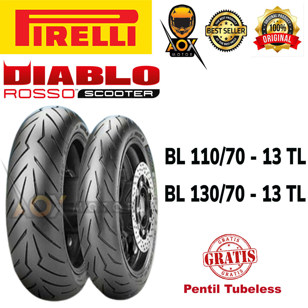 Ban luar motor matic set depan 110/70-13 belakang 130/70-13 NMAX PIRELLI Diablo Rosso Sport tubeless, GRATIS cop tubeles