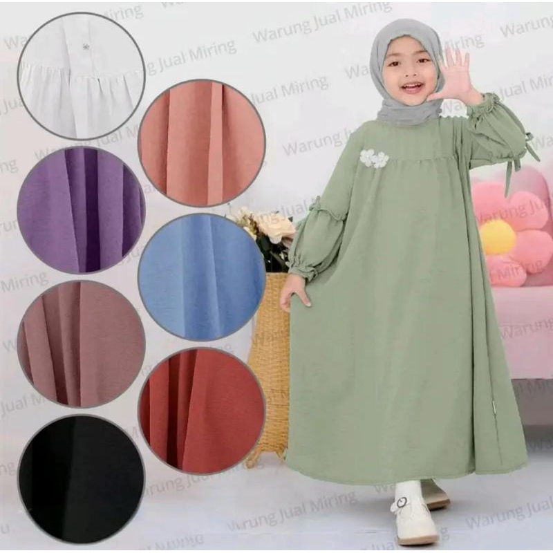 GAMIS SET ANAK PEREMPUAN 2-12 TAHUN HIJAB PASHMINA BAHN CRINKLE AIRFLOW BAJU DRESS GAMIS SAKURA