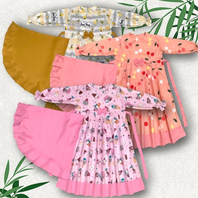 Baju Gamis Anak Perempuan Terbaru Plus Kerudung Motif Karakter 2-6 Tahun
