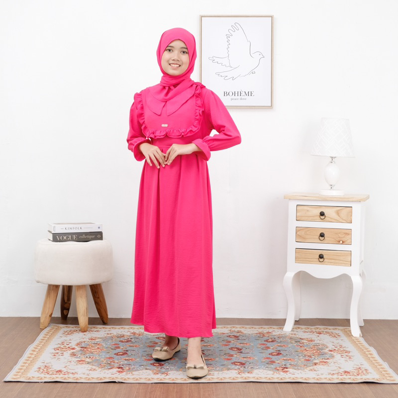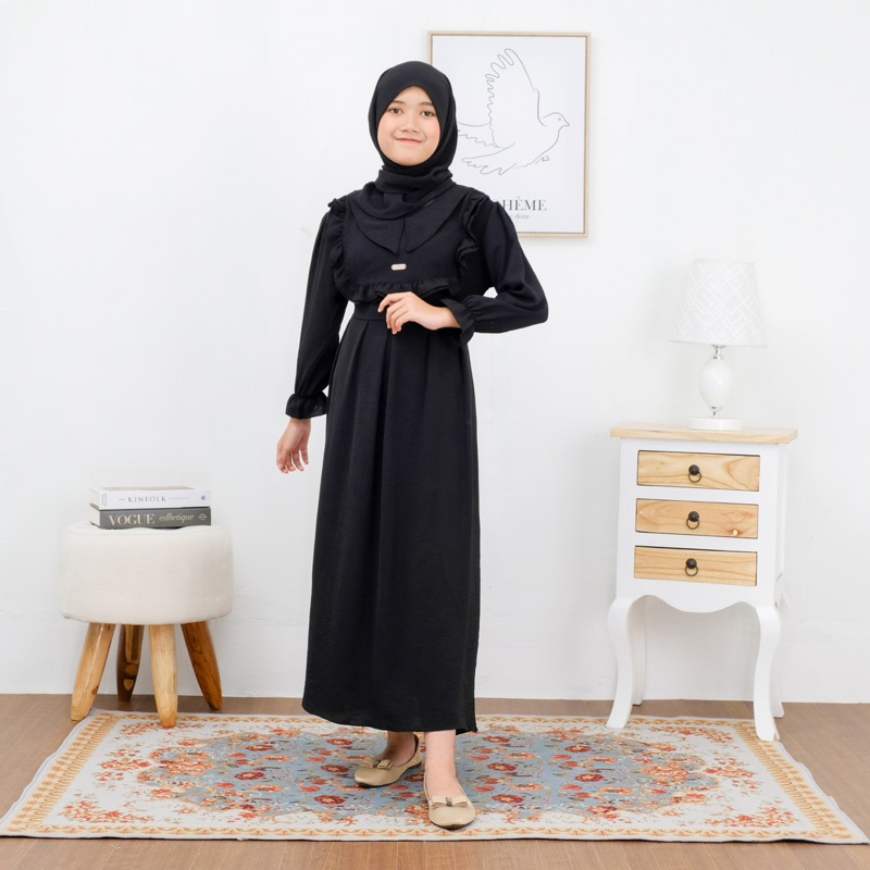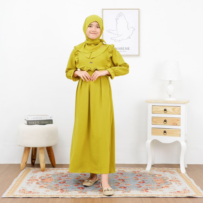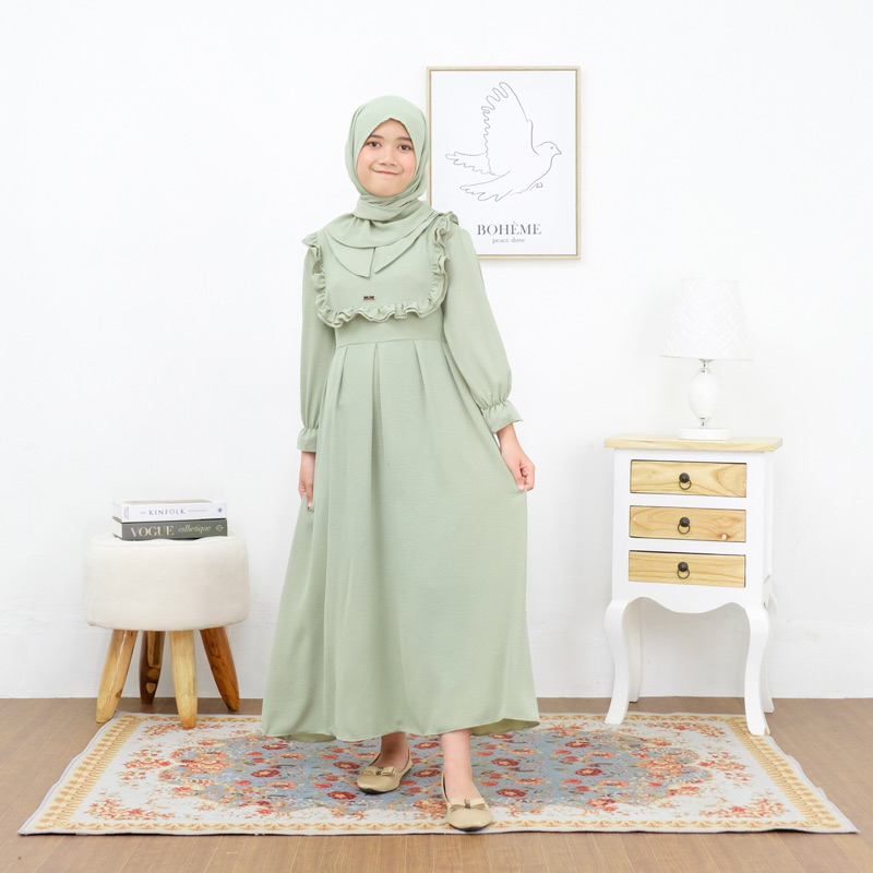Alifia Dress Gamis Anak Perempuan Setelan Baju Muslim Anak Perempuan Usia 1-12 Tahun Crinkle Airflow Terbaru