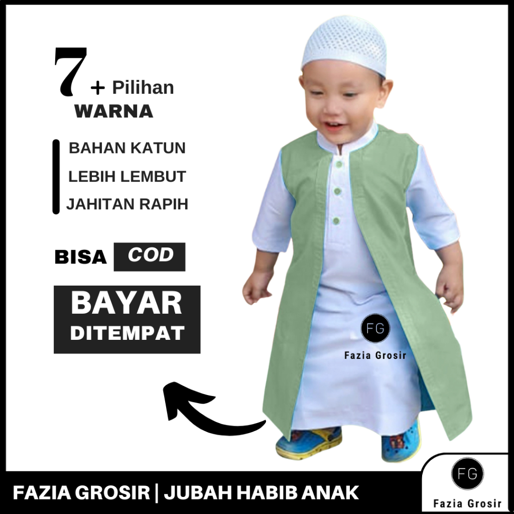 FAZIA GROSIR Jubah Habib Anak by RAINAN ORI (Free Peci) / Jubah Anak Terbaru 2021 / Gamis Anak Laki Laki / Jubah Anak Us